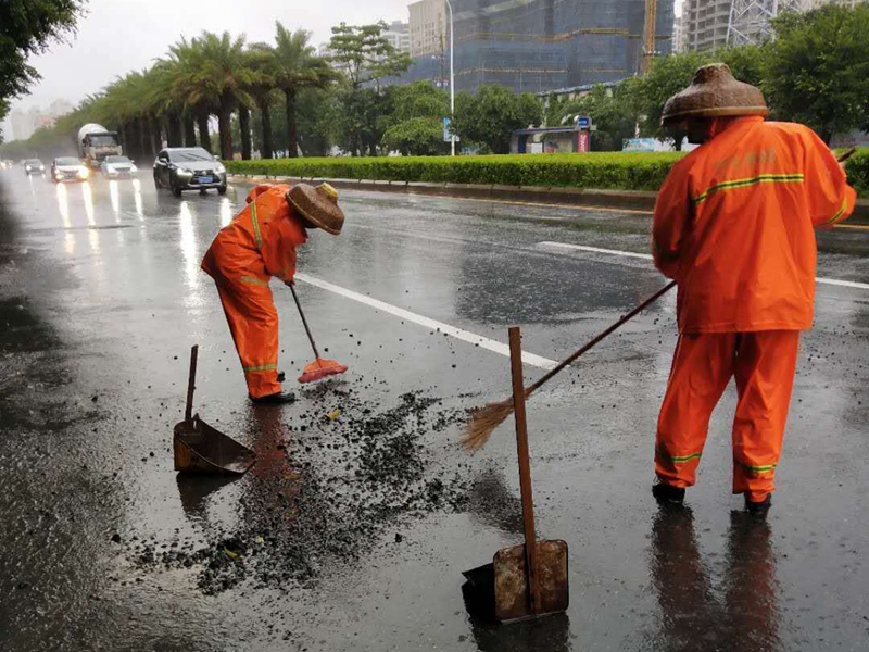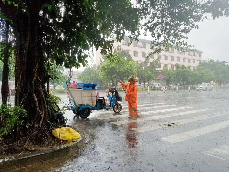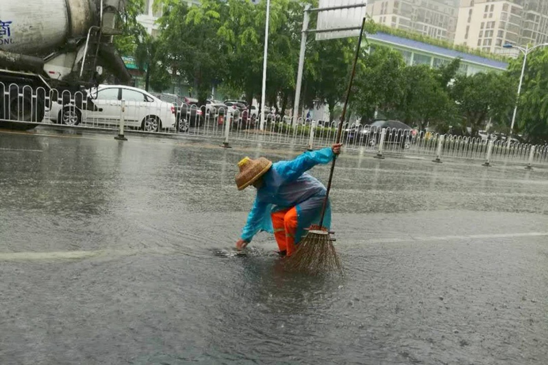 走在大街小巷上,隨處可以看到忙碌的環(huán)衛(wèi)工人,正冒雨正忙著打掃樹枝、樹葉和清理各種垃圾。