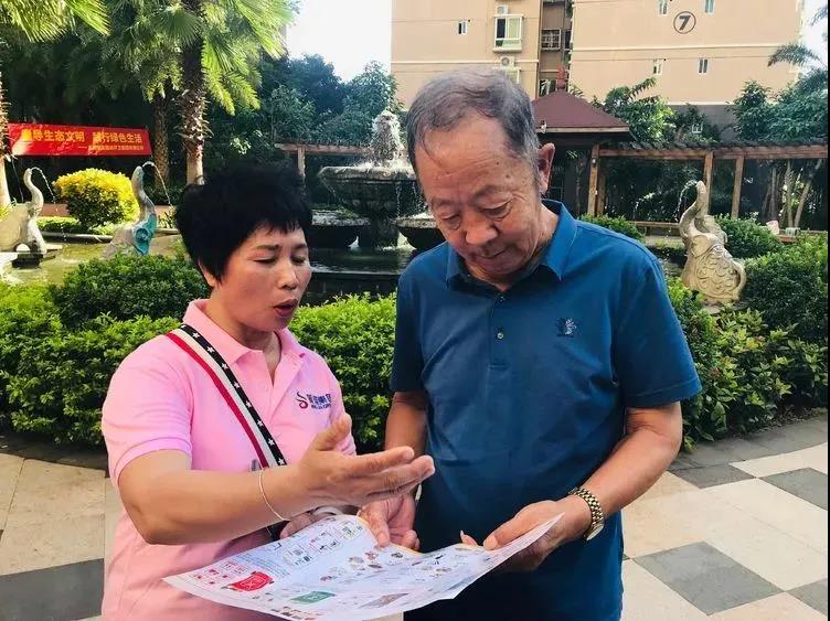活動(dòng)伊始,工作人員向小區(qū)居民分發(fā)了垃圾分類宣傳冊(cè),