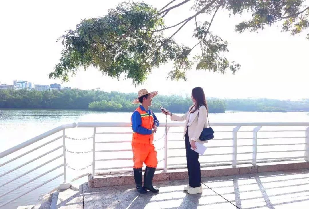 每天工作都是從早上7點(diǎn)鐘到下午的6點(diǎn)半,我們是分段來的。主要是坐船去收集河上的一些垃圾,一天巡邏清掃一次,清掃完了回來再巡邏保潔。水面和紅樹林里的垃圾都要清理。下雨天我們也要出來(工作),臺風(fēng)天就要做好防風(fēng)的工作,如果是下雨,我們一樣要出來打撈垃圾。