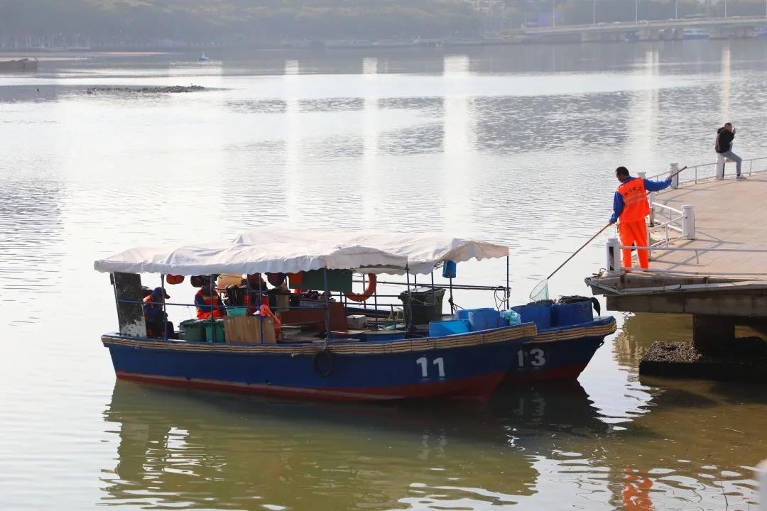 曾靈是三亞明佳園林環(huán)衛(wèi)集團(tuán)天涯區(qū)環(huán)衛(wèi)二隊的一名員工,和我們平常在街邊看到清理地面垃圾的環(huán)衛(wèi)工人有所不同,他的工作是在船上完成的,每天需要站在作業(yè)船上,手持一把長柄濾網(wǎng),將漂浮在三亞河上的落葉、紙屑等垃圾打撈起來,放入專門的垃圾桶里再運(yùn)輸走。記者來到曾靈的工作地點(diǎn):三亞河,近距離了解他春節(jié)期間的工作是什么樣的……