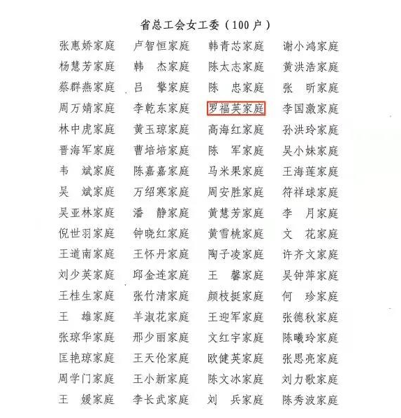 明佳集團(tuán)吉陽區(qū)域環(huán)衛(wèi)四隊(duì)隊(duì)長(zhǎng)羅福英家庭于2021年10月22日被海南省婦聯(lián)推選為2021年海南省“綠色家庭”示范戶。