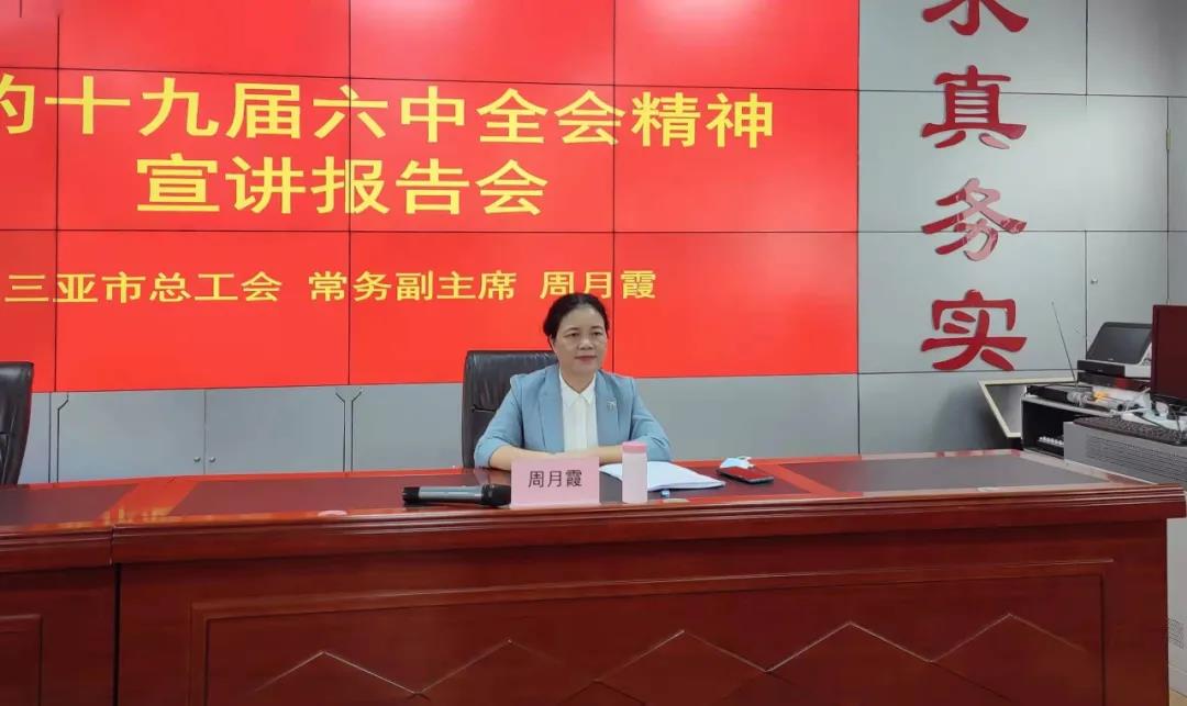 為深入學習宣傳貫徹黨的十九屆六中全會精神,三亞市總工會制定并印發(fā)了《關(guān)于在全市工會系統(tǒng)開展學習宣傳貫徹黨的十九屆六中全會精神宣講活動的通知》,組建市總工會領(lǐng)導(dǎo)班子宣講團,深入相關(guān)基層工會開展黨的十九屆六中全會精神宣講。2022年1月6日上午,市總工會黨組副書記、常務(wù)副主席周月霞到三亞明佳園林環(huán)衛(wèi)集團有限公司宣講黨的十九屆六中全會精神。明佳集團總裁陳云參加宣講會。