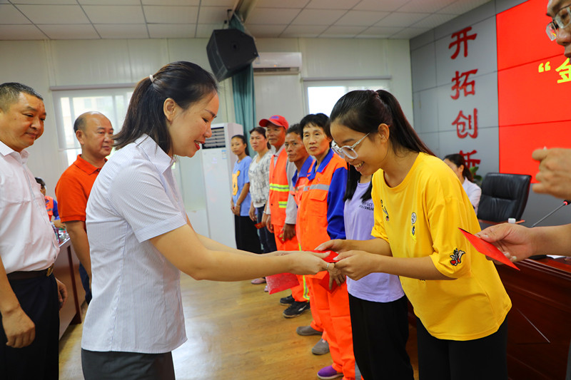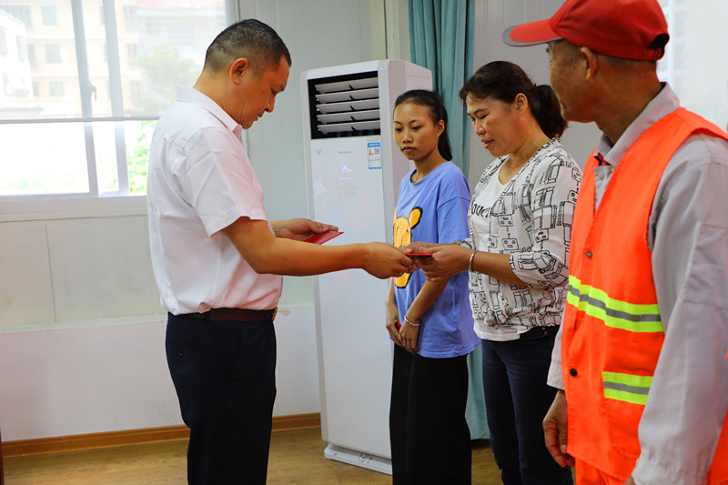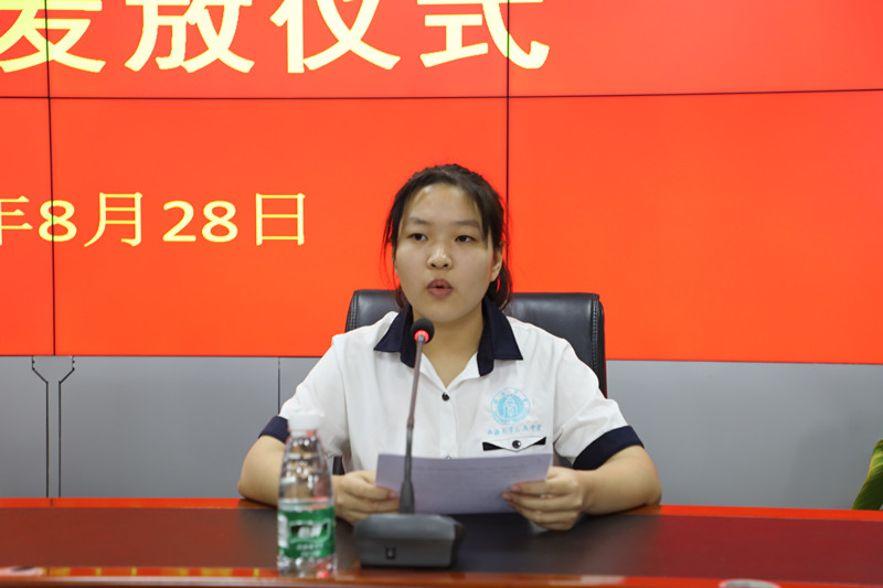 (工會主席高斐斐向?qū)W子發(fā)放助學(xué)金)